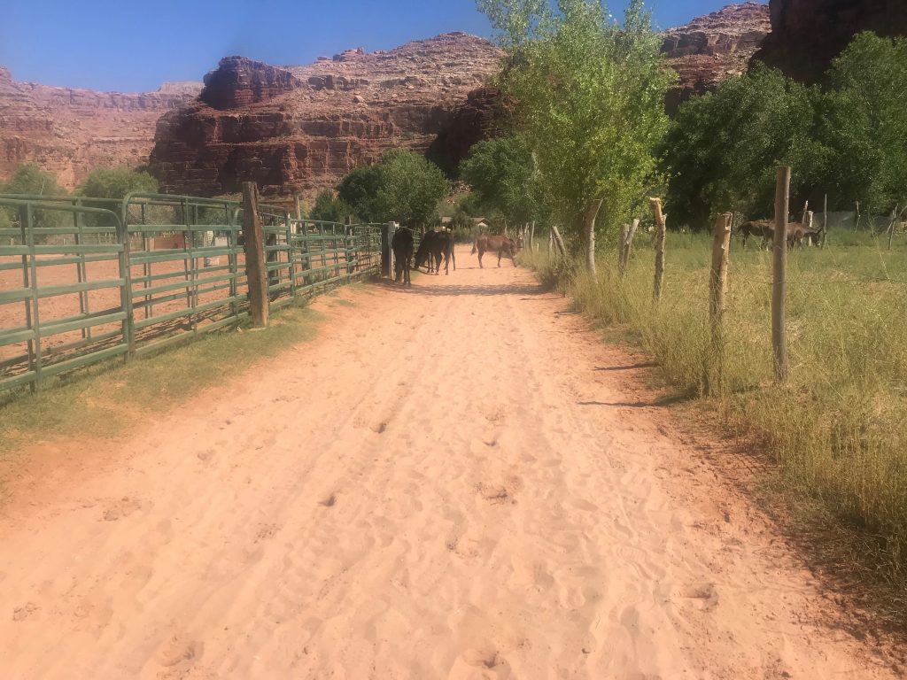 • The next 7 miles to Supai village is relatively flat with a slight slope downwards following a dry riverbed of sand and gravel. The trail itself has no markers, but it is typically very obvious from all the foot and mule traffic. If you feel like you’ve lost the trail it will likely reappear just ahead.