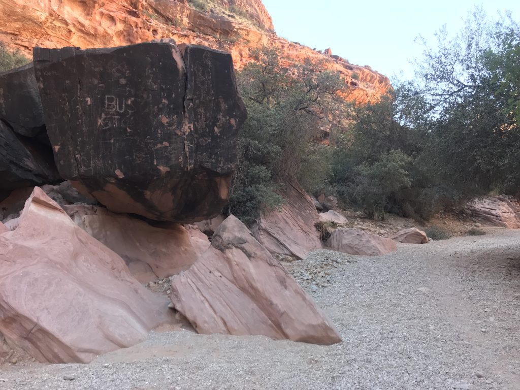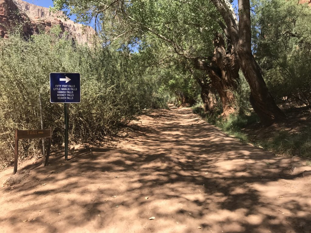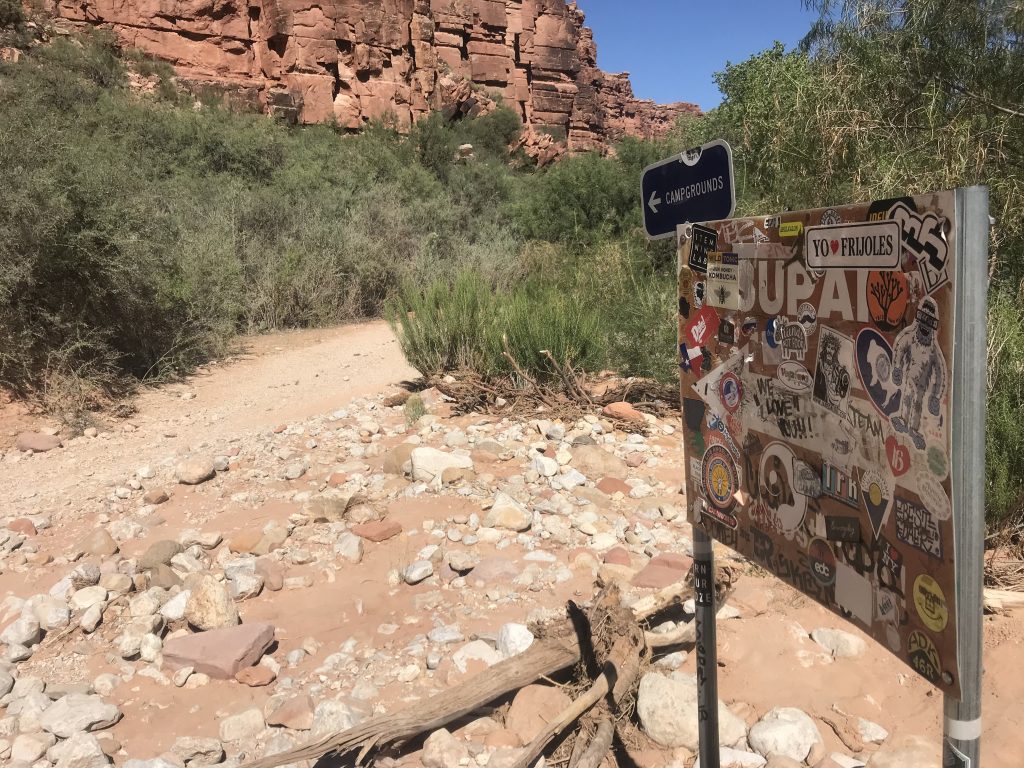 Bus Stop! Unfortunately, no buses run in and out of Supai, but if you see this landmark you’re halfway between Hilltop and Havasu Falls campgrounds. 5 miles down, 5 miles to go! Note: This is the view when heading toward Hilltop.