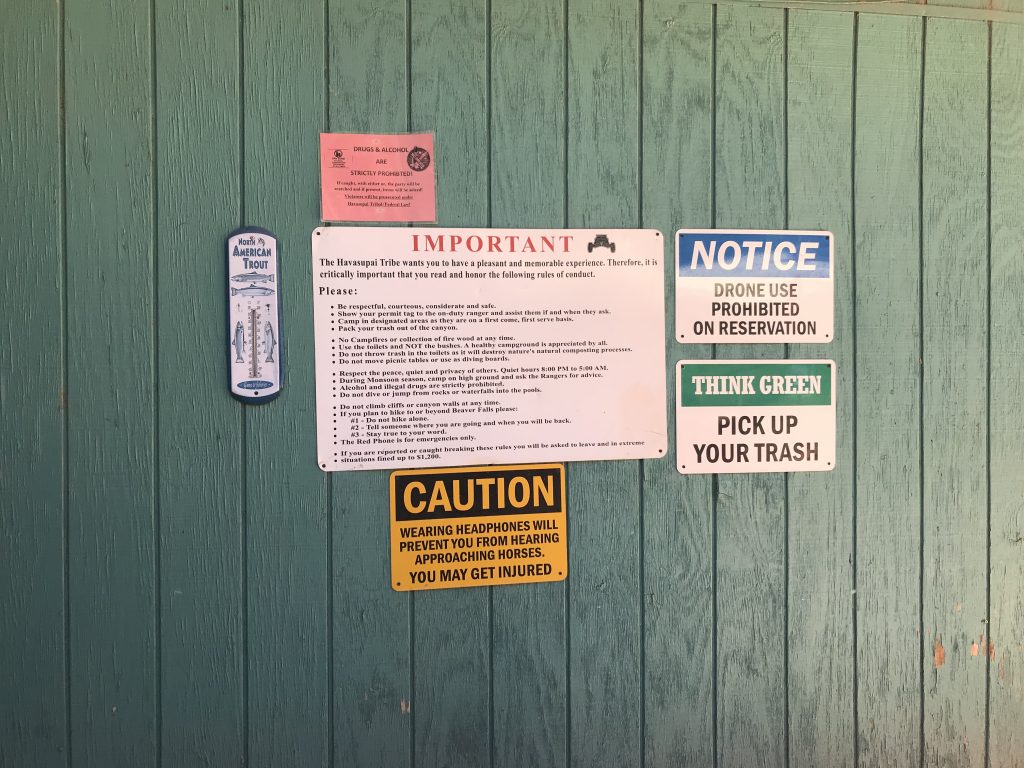 Havasupai Tourism Office. Don’t forget to check-in! Once you reach Supai village center you’ll see the office sign. One of the two people on the reservation needs to be present to check-in the group. Have your printed reservation email ready. You’ll receive waterproof wristbands for each group member and a single tent tag for the group.